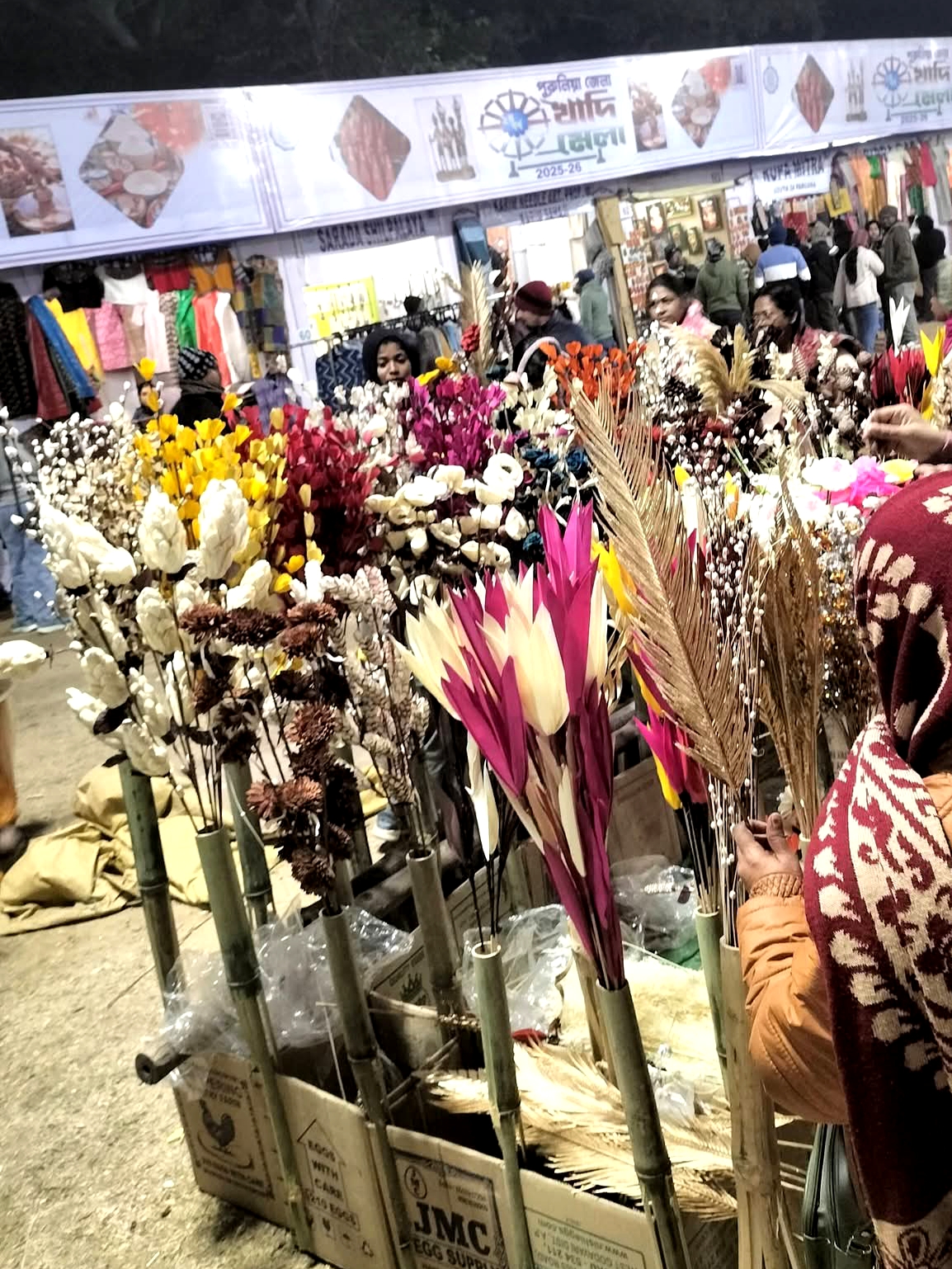 मेले में इस वर्ष पंजाबी कुर्ते, जवाहर कोट से लेकर स्वर्णलता और पशमीना जैसी उत्कृष्ट साड़ियों की विशाल श्रृंखला प्रदर्शित की गई है। यहां न केवल वस्त्र, बल्कि उत्तर बंगाल के जलपाईगुड़ी का बेंत फर्नीचर, कूचबिहार की प्रसिद्ध शीतलपाटी और मेदिनीपुर के पारंपरिक पटचित्र भी उपलब्ध हैं। मोहनीगंज का प्रसिद्ध तुलाईपांजी चावल और सुंदरबन का शुद्ध शहद भी ग्राहकों को अपनी ओर आकर्षित कर रहा है।