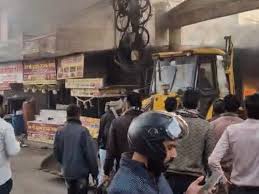 जेसीबी से तोड़ा शेड, तब काबू में आई आग