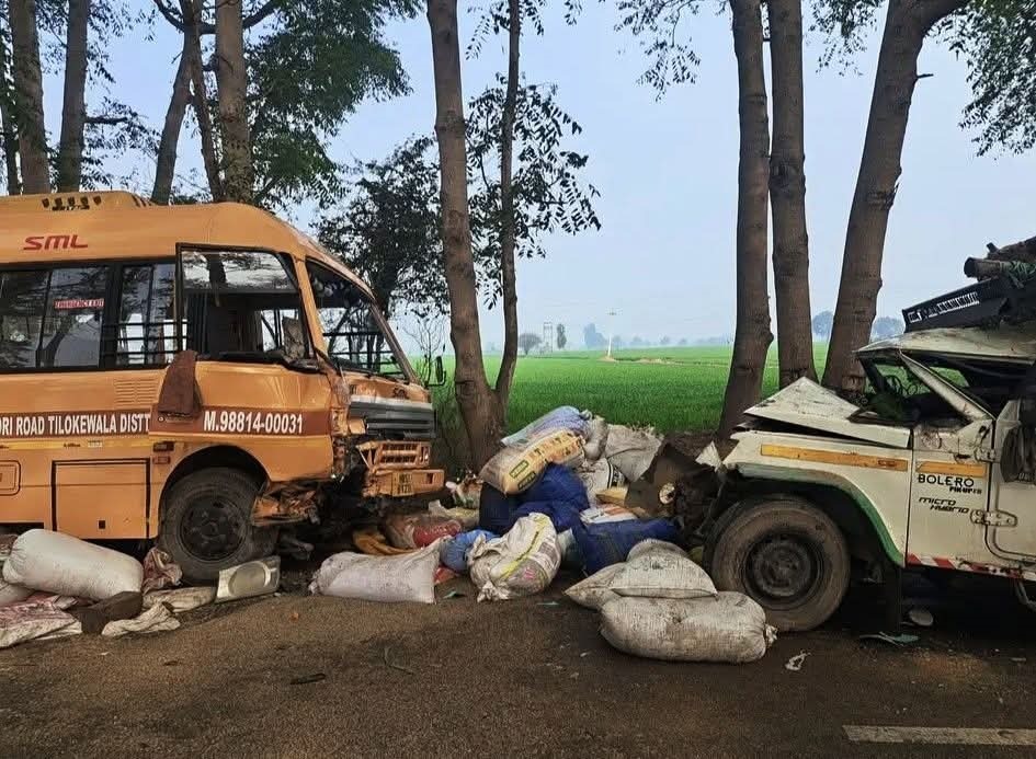 सिरसा, 02 फरवरी (प्रेस ब्यूरो)। सिरसा जिले के गांव तिलोकेवाला के पास सोमवार को एक स्कूली बस और पिकअप गाड़ी के बीच जोरदार टक्कर हो गई, जिसमें पिकअप चालक की मौत हो गई, जबकि दो लोग घायल हो गए। गनीमत यह रही कि बस में सवार विद्यार्थियों को कोई चोट नहीं आई। घटना की सूचना मिलने पर पुलिस मौके पर पहुंची और घायलों को उपचार के लिए नागरिक अस्पताल में भेजा गया जहां पिकअप चालक फतेहाबाद निवासी राजकुमार को चिकित्सकों ने मृत घोषित कर दिया।