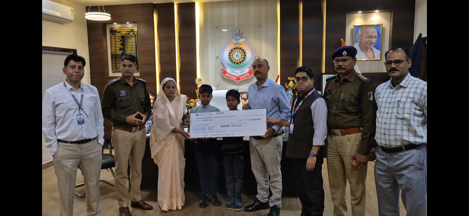 पुलिस अधीक्षक विजय कुमार पाण्डेय के सतत प्रयासों के बाद आज सोमवार 2 फरवरी 2026 को स्टेट बैंक ऑफ इंडिया, जांजगीर की नैला शाखा के शाखा प्रबंधक रवि शर्मा एवं उनके वरिष्ठ अधिकारियों द्वारा पुलिस सैलरी पैकेज योजना के अंतर्गत 1 करोड़ रुपये का बीमा चेक स्वर्गीय आरक्षक की पत्नी को सौंपा गया।