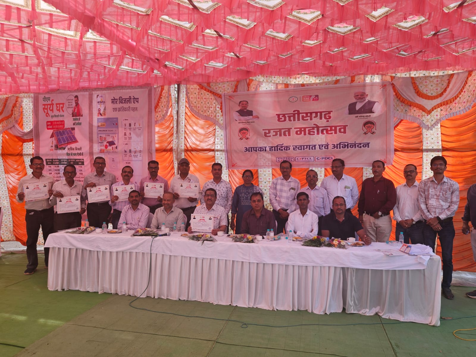 कार्यक्रम में धमतरी जोन के सहायक अभियंता बी.एल. सिन्हा, अर्जुनी उपसंभाग के सहायक अभियंता वामन कुमार साहू, के.एस.जी. उपसंभाग के सहायक अभियंता तुषार सिन्हा सहित बड़ी संख्या में ग्रामीण उपभोक्ता उपस्थित रहे। इस अवसर पर बीपीएल, घरेलू, कृषि पंप कनेक्शन तथा प्रधानमंत्री सूर्य का मुफ्त बिजली योजना के अंतर्गत सोलर कनेक्शन लेने वाले पांच-पांच उपभोक्ताओं को प्रशस्ति पत्र देकर सम्मानित किया गया।