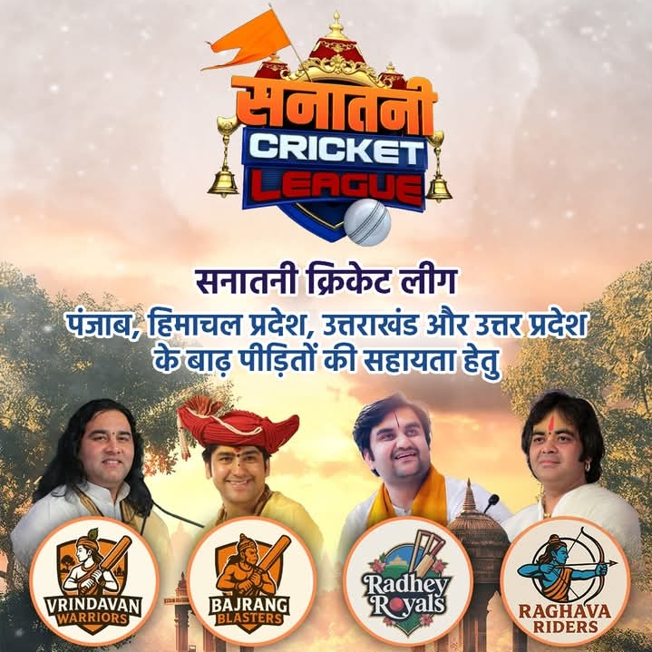 उत्तर भारत में आई भीषण बाढ़ से प्रभावित परिवारों की सहायता के लिए अब सामाजिक और धार्मिक संस्थाएं भी आगे आ रही हैं। इसी कड़ी में सनातन न्यास फाउंडेशन द्वारा एक विशेष आयोजन ‘सनातन क्रिकेट लीग (एससीएल)’ का आयोजन किया जा रहा है। यह आयोजन 18 अक्टूबर 2025 को सुबह 9:30 बजे, नई दिल्ली के करनैल सिंह स्टेडियम, पहाड़गंज में होगा। इस आयोजन से जुटाई गई धनराशि बाढ़ पीड़ितों की सहायता के लिए समर्पित की जाएगी।
