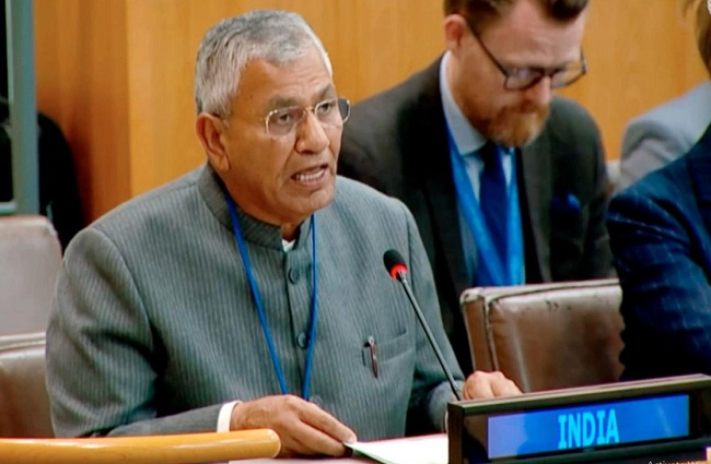 राजस्थान के पाली से सांसद और एक राष्ट्र एक चुनाव पर गठित संयुक्त संसदीय समिति (जेपीसी) के अध्यक्ष पीपी चौधरी ने बुधवार को संयुक्त राष्ट्र की तीसरी समिति की बैठक में आम बहस के दौरान भारत का पक्ष रखते हुए पाकिस्तान के नापाक इरादों और दुष्प्रचार के रिकॉर्ड को तीखे ढंग से उजागर किया। उन्होंने विश्व समुदाय को याद दिलाया कि पाकिस्तान के अपने सेना प्रमुख ने भी देश को ‘डंप ट्रक’ बताया है, जो उसके शासन की सड़न को उजागर करता है। उन्होंने जम्मू-कश्मीर पर पाकिस्तान की निराधार टिप्पणियों को खारिज करते हुए दोहराया कि यह केंद्रशासित प्रदेश भारत का अभिन्न और अविभाज्य अंग है।