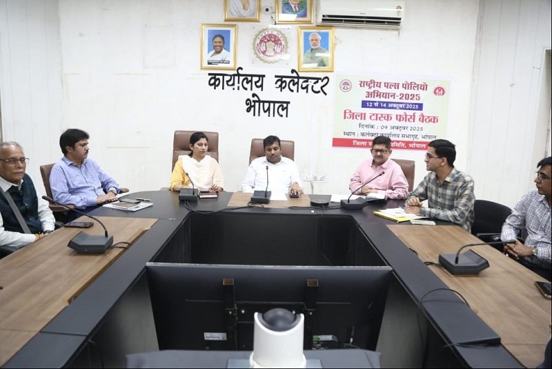 भोपाल, 9 अक्टूबर (हि.स.) । राष्ट्रीय पल्स पोलियो अभियान 12 अक्टूबर को आयोजित होगा, जिसमें 5 साल तक की उम्र के बच्चों को पोलियो दवा का सेवन कराया जाएगा। कलेक्टर कौशलेंद्र विक्रम सिंह की अध्यक्षता में गुरुवार को कलेक्टर कार्यालय में टास्क फोर्स बैठक आयोजित की गई। जिसमें पल्स पोलियो अभियान पर चर्चा कर शत – प्रतिशत टीकाकरण के निर्देश दिए गए।