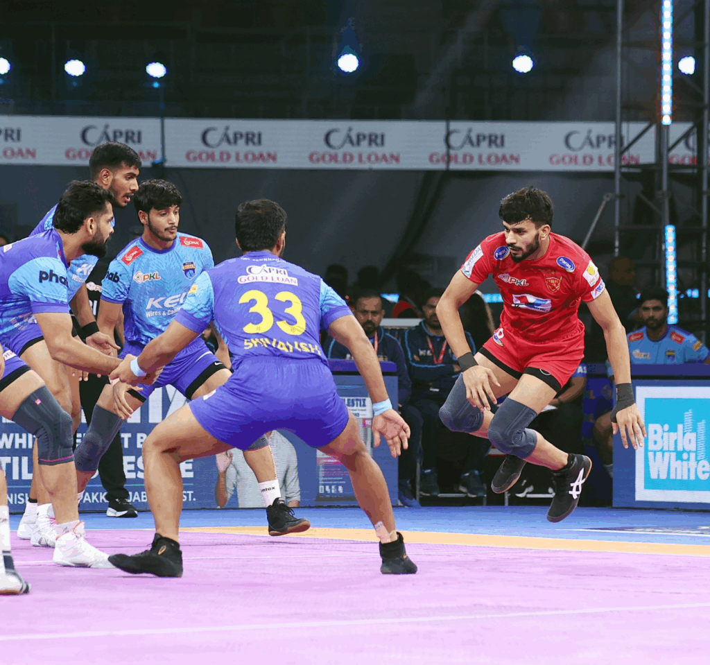 आलइन के बाद देवांक ने न सिर्फ फासला 3 का किया बल्कि अपना सुपर-10 भी पूरा किया। इसके बाद आशीष ने लीड 4 की कर ली। मोहित ने हालांकि फासला 3 का किया और फिर फजल ने देवांक को लपक लिया लेकिन स्कोर डिफरेंस 3 का बना हुआ था। मोहित ने अगली रेड पर भी अंक लेकर 35-37 कर दिया। इस बीच हिमांशु अपनी रेड पूरी नहीं कर सके। स्कोर 36-37 हो गया था। इस तरह दिल्ली को एक अंक से हार मिली।